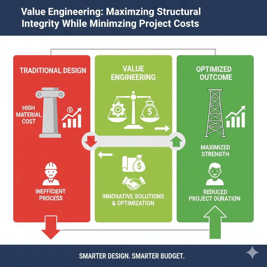 Value engineering is not about building cheaper—it is about building smarter. By focusing on function, efficiency, and long-term performance, value engineering ensures that structural integrity is preserved while unnecessary costs are eliminated.